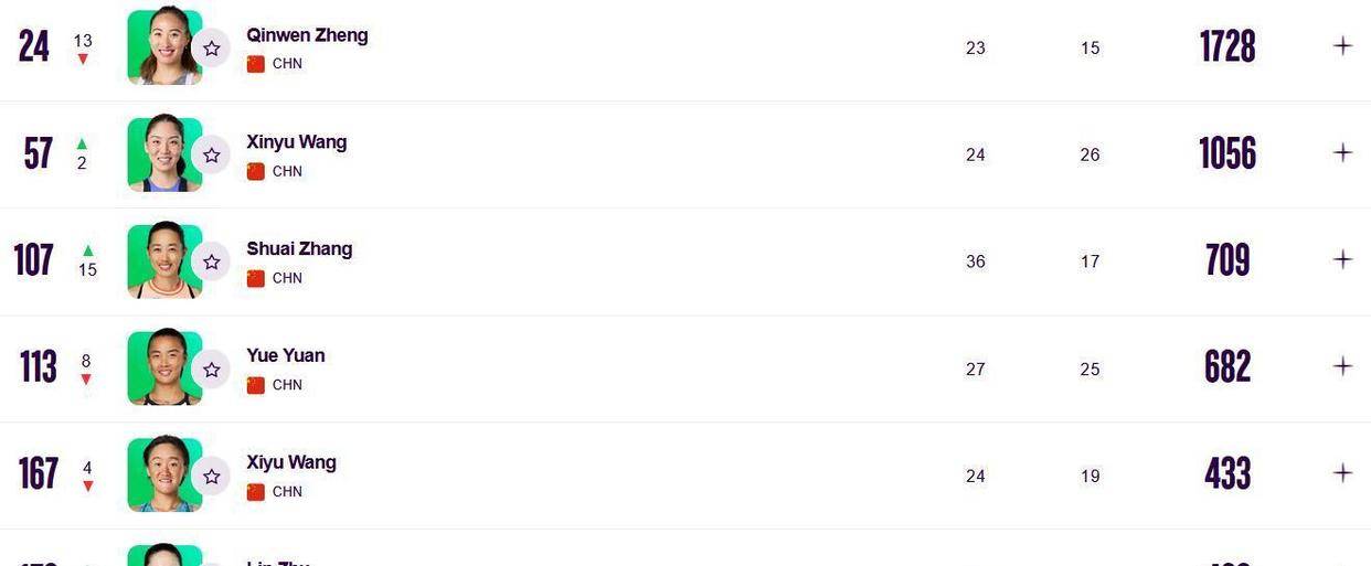与此同时,其他中国金花的表现也难以令人满意。 王欣瑜的排名虽然微升2位至第57,但她最近的状态同样起伏不定。 在东京站女单首轮比赛中,王欣瑜被排名第82位的法国资格赛选手逆转淘汰,这是她近期遭遇的单打六连败。