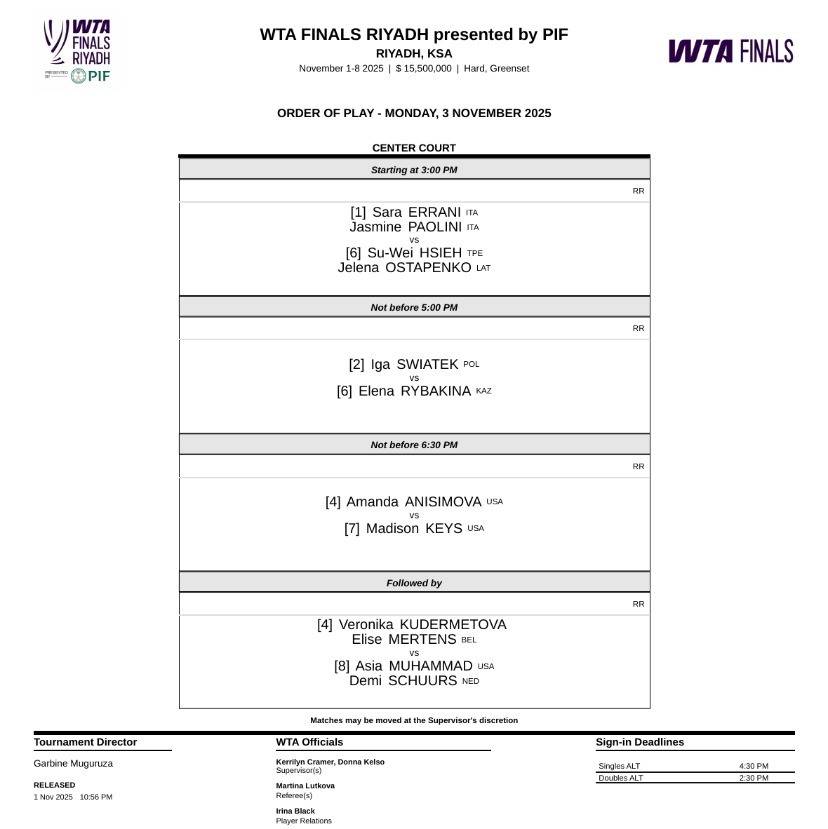 WTA巡回赛,女子网球,WTA排名,WTA赛程,女单四大满贯,女子网球直播/聚焦2025 WTA女子网球巡回赛,涵盖四大满贯、WTA1000/500/250赛事的赛程、排名、战报及竞猜推荐,为中文网球爱好者带来一站式资讯导航。2025年利雅得WTA年终总决赛在当地时间11月2日拉开战幕,备受瞩目的格拉芙组女单比赛以及胡贝尔组女双赛事率先展开首轮较量。