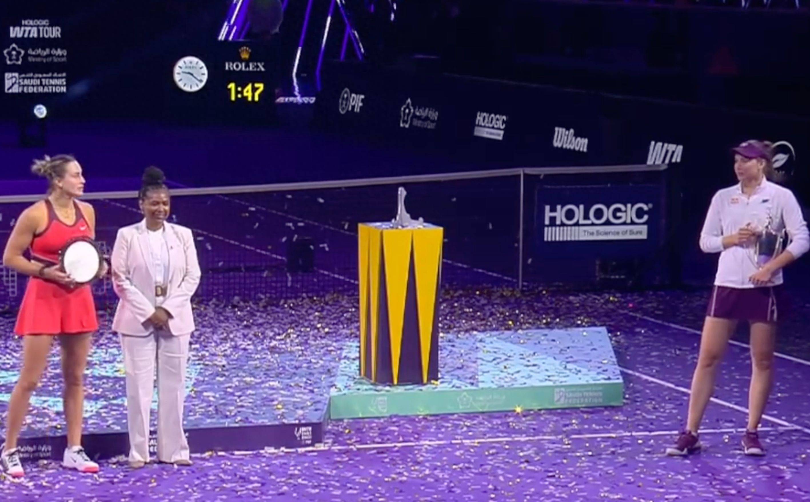 当日凌晨,WTA总决赛的决赛迎来了世界排名第6的莱巴金娜与世界排名第1的萨巴伦卡的对决。虽然赛前莱巴金娜并不被看好,但她表现得非常强势,连赢两盘,以2-0爆冷战胜了萨巴伦卡,成功摘得年终冠军。