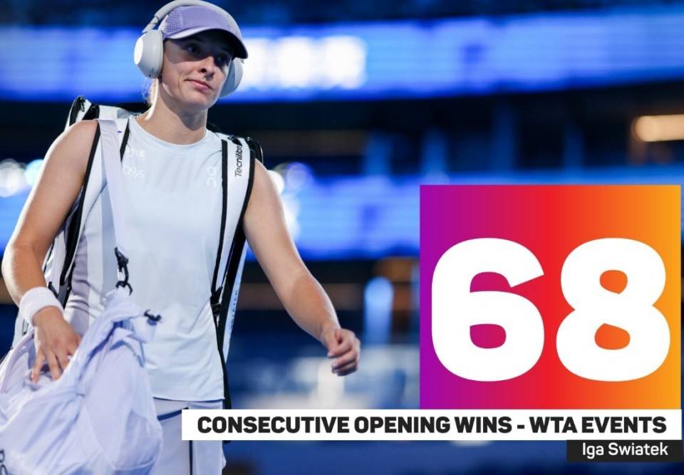 本场比赛获胜的斯瓦泰克,已经连续68站巡回赛级别的赛事首战取胜,创造了新的WTA巡回赛纪录。