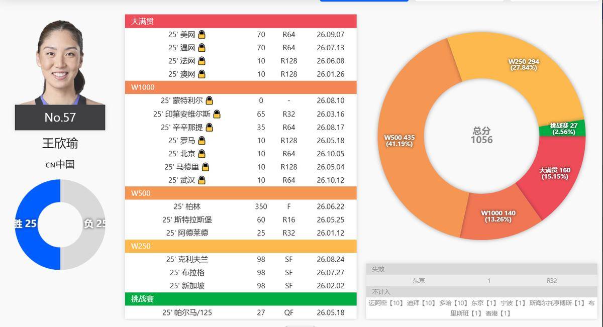 目前王欣瑜没有出现在下周的赛事签表上,这也意味着她的赛季基本告一段落。虽然在锦标赛上未能有所斩获,但她在巡回赛上的战绩达到25胜25负,赛季奖金已经突破百万美元,成绩仍相当亮眼。接下来,她的主要目标将是全运会,期待她在国内赛场上继续展现实力。