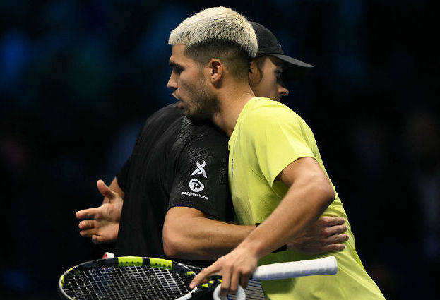 我们再把目光转向意大利的都灵。北京时间昨晚,2025赛季ATP年终总决赛拉开大幕。在首个比赛日的较量中,单打吉米-康纳斯组的西班牙红星阿尔卡拉斯发挥稳定,以7-6(5) 6-2击败澳洲小野兔德米纳尔,对后者保持五战全胜,首战告捷。在收获了200个积分之后,阿卡距离年终世界第一还差两场胜利。