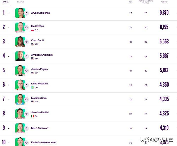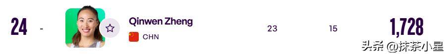 世界前三的位置依旧稳固,萨巴伦卡、斯瓦泰克和高芙牢牢占据着前三甲。中国选手郑钦文则位列第24位。