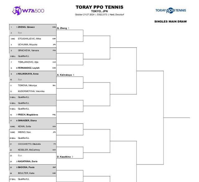 WTA巡回赛,女子网球,WTA排名,WTA赛程,女单四大满贯,女子网球直播/聚焦2025 WTA女子网球巡回赛,涵盖四大满贯、WTA1000/500/250赛事的赛程、排名、战报及竞猜推荐,为中文网球爱好者带来一站式资讯导航。WTA500东京站的签表终于揭晓啦!这是一年一度的盛事,也是年终总决赛前的最后一次重要热身赛。在这场充满看点和悬念的大战中,中国的网坛代表郑钦文和王欣瑜都将参与其中。尤其引人瞩目的是郑钦文作为头号种子的身份出现在签表上,她将为年终总决赛做最后的准备。而王欣瑜则面对着首轮对阵前美网冠军安德莱斯库的考验,比赛的火药味十足!
