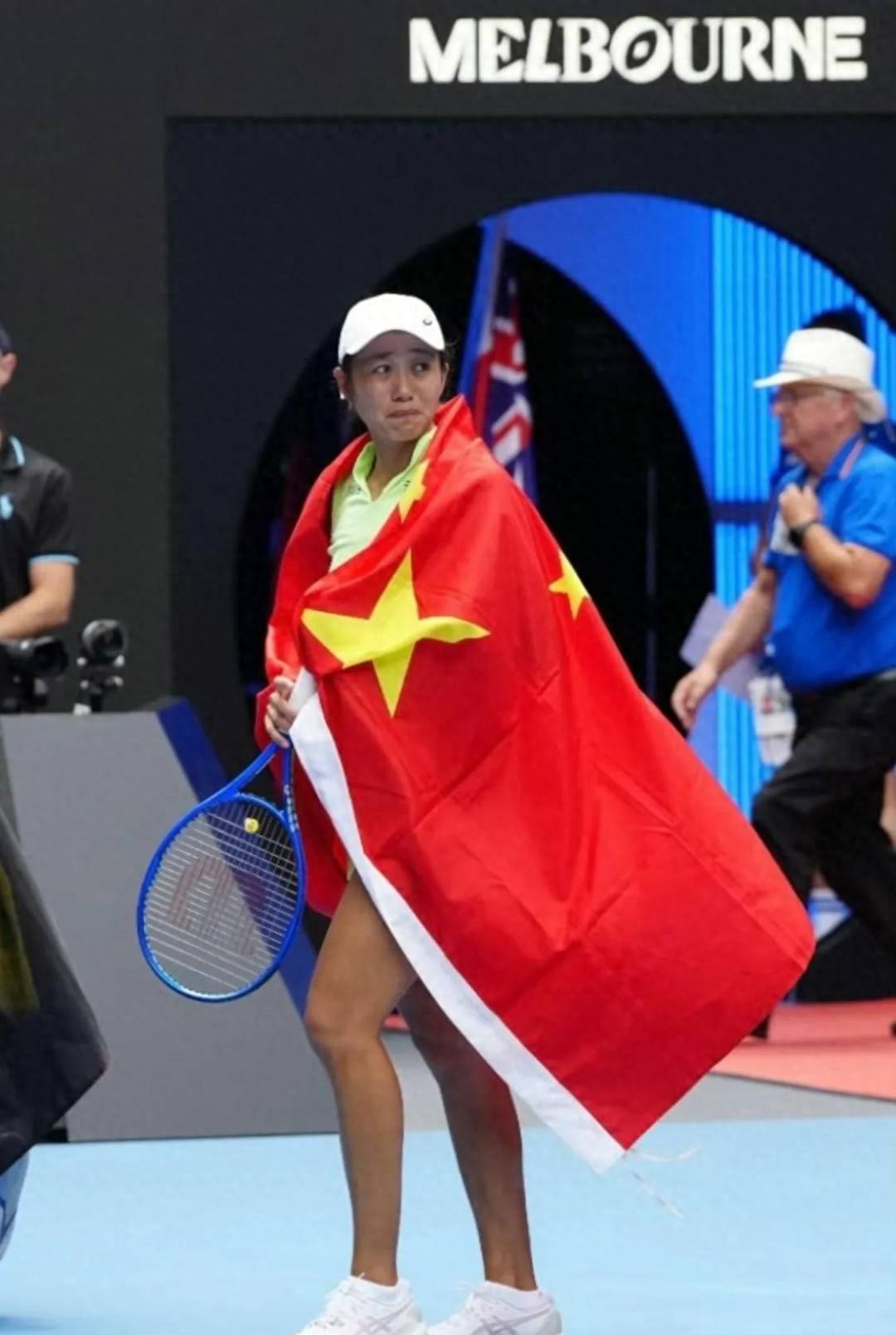 赛后看到张帅身披国旗一会笑一会哭,有球迷和网友打趣帅金花,这定力真够强的,要是自己达成这项了不起的壮举,早已经哭成了泪人,理由是:中国双打网球的拓荒人郑洁现场见证,以及七年前的澳网夺冠搭档斯托瑟充当颁奖嘉宾,张帅有一万个理由可以让喜泪尽情流,以此来抒发内心的喜悦和激动之情。